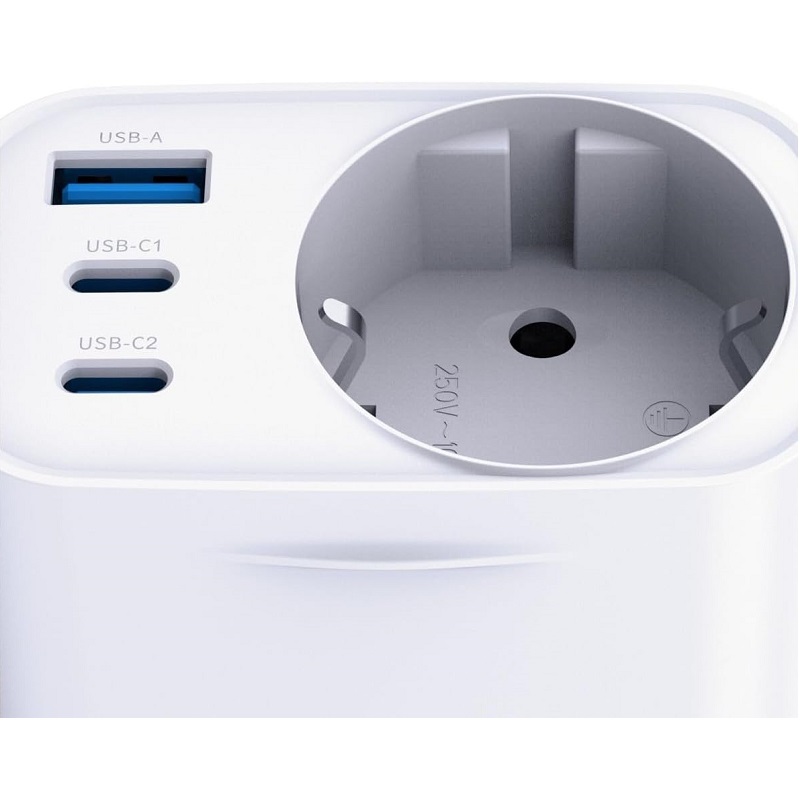 – Tension de sortie: USB-C1/C2 : 5 V/3 A, 9 V/3 A, 12 V/2,5 A (PD 30 W); USB-A : 5 V/3 A, 9 V/2 A, 12 V/1,5 A (QC 18 W); USB-C1+C2 : 5 V/3 A (15 W max.); USB-C1+A : 5 V/3 A (15 W max.); USB-C2+A : 5 V/3 A (15 W max.); USB-C1+C2+A : 5 V/3 A (15 W max.); Prise secteur : 3 680 W max