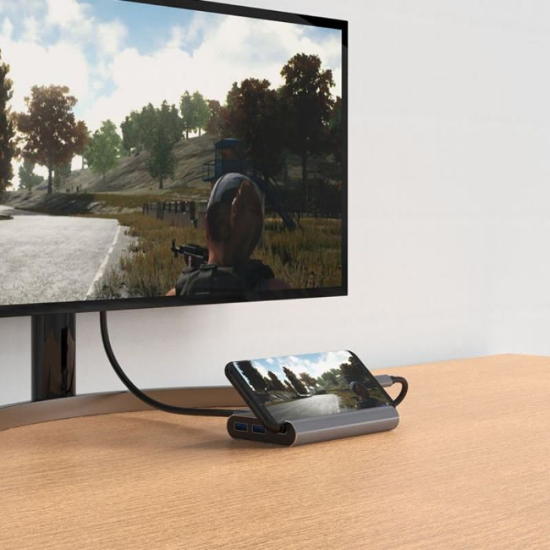 – Hub d’extension multi-interface de type C avec un support de téléphone