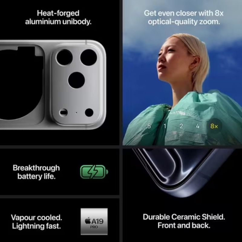 – Processeur: Apple A19 (3 nm) Hexa-core GPU 6 cœurs avec accélérateurs neuronaux